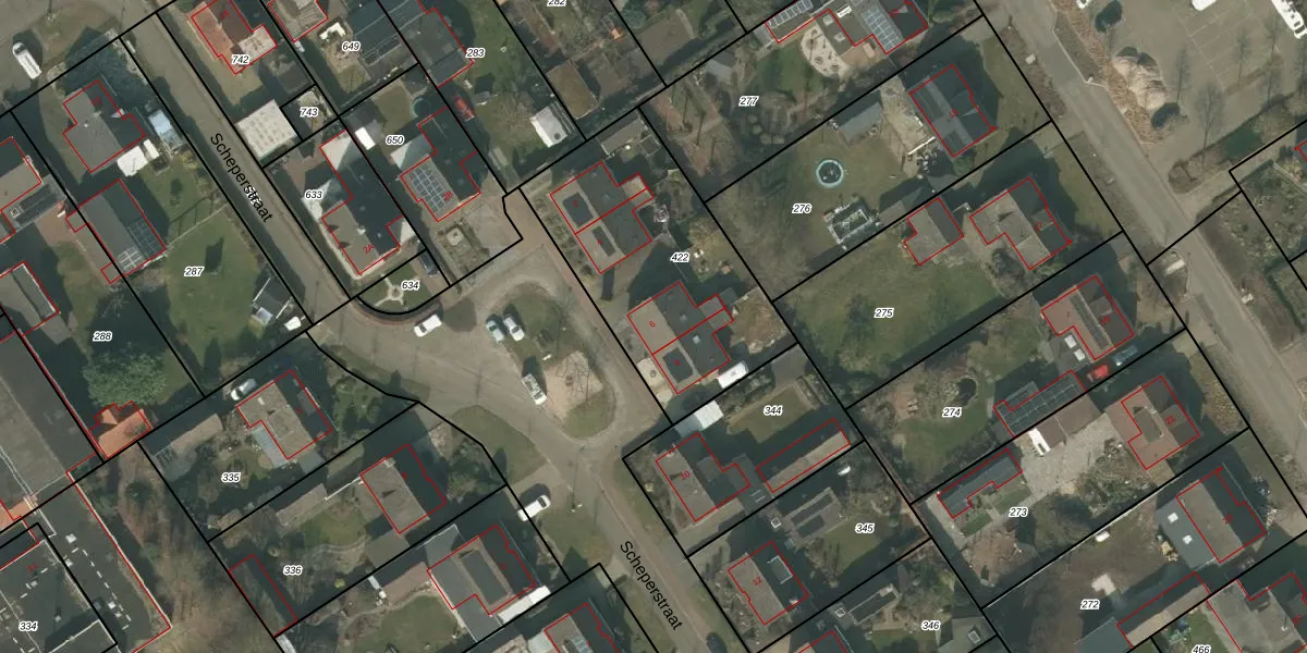 Het perceel waarop Scheperstraat 6 staat heeft een oppervlakte van 971 m². Dit is een groot perceel. De perceeloppervlakte wordt geregistreerd door het Kadaster. Gedetailleerde informatie over de maten van dit perceel kunt u vinden in het rapport Kadastrale kaart met maatvoering van Scheperstraat 6.