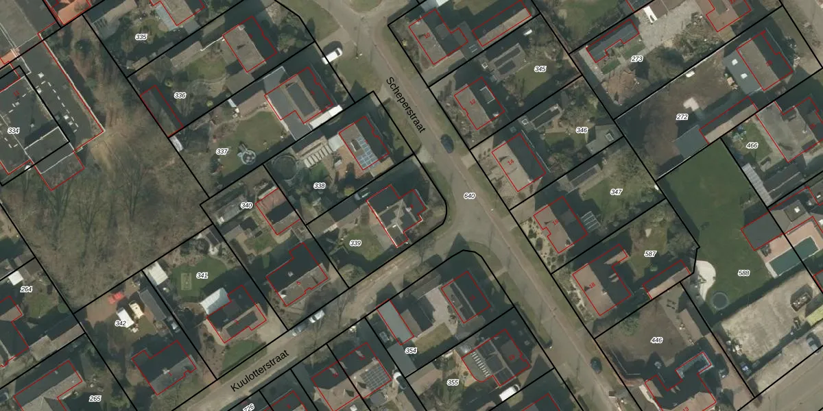 Het perceel waarop Scheperstraat 9 staat heeft een oppervlakte van 570 m². Dit is een groot perceel. De perceeloppervlakte wordt geregistreerd door het Kadaster. Gedetailleerde informatie over de maten van dit perceel kunt u vinden in het rapport Kadastrale kaart met maatvoering van Scheperstraat 9.