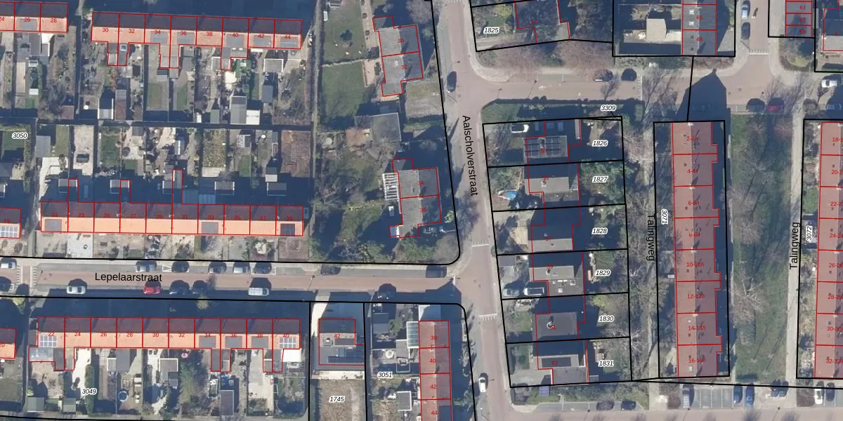 Het perceel waarop Aalscholverstraat 36 staat heeft een oppervlakte van 1,1 ha. Dit is een zeer groot perceel. De perceeloppervlakte wordt geregistreerd door het Kadaster. Gedetailleerde informatie over de maten van dit perceel kunt u vinden in het rapport Kadastrale kaart met maatvoering van Aalscholverstraat 36.