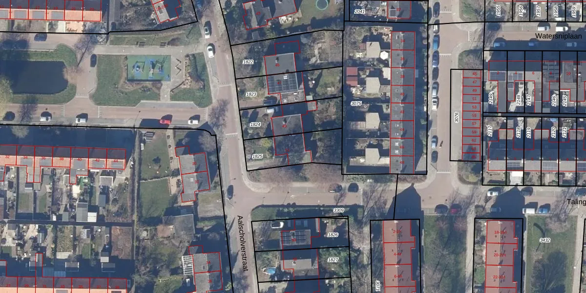 Gebruik de zoekbalk of klik op een perceel voor informatie over de adressen binnen dit perceel.