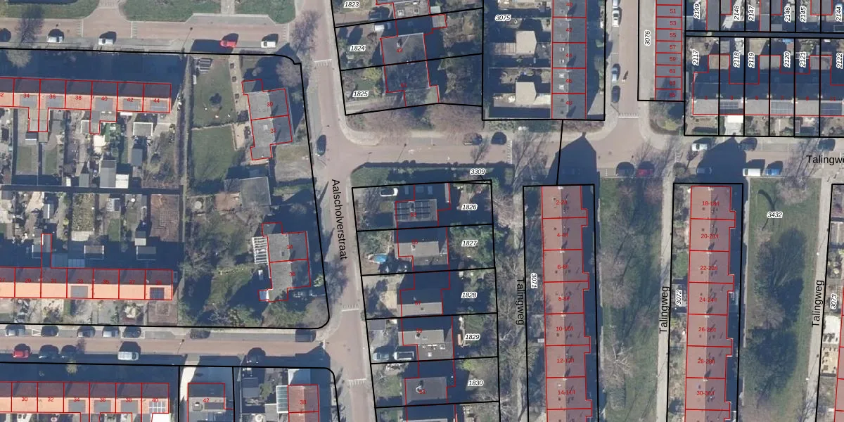 Het perceel waarop Aalscholverstraat 53 staat heeft een oppervlakte van 341 m². Dit is een groot perceel. De perceeloppervlakte wordt geregistreerd door het Kadaster. Gedetailleerde informatie over de maten van dit perceel kunt u vinden in het rapport Kadastrale kaart met maatvoering van Aalscholverstraat 53.