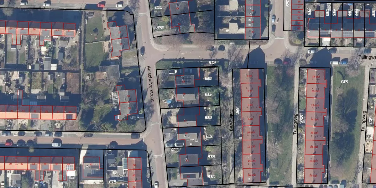 Het perceel waarop Aalscholverstraat 55 staat heeft een oppervlakte van 335 m². Dit is een groot perceel. De perceeloppervlakte wordt geregistreerd door het Kadaster. Gedetailleerde informatie over de maten van dit perceel kunt u vinden in het rapport Kadastrale kaart met maatvoering van Aalscholverstraat 55.