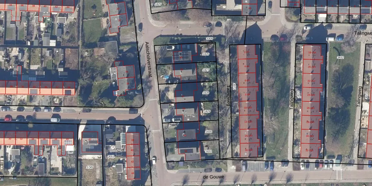 Gebruik de zoekbalk of klik op een perceel voor informatie over de adressen binnen dit perceel.