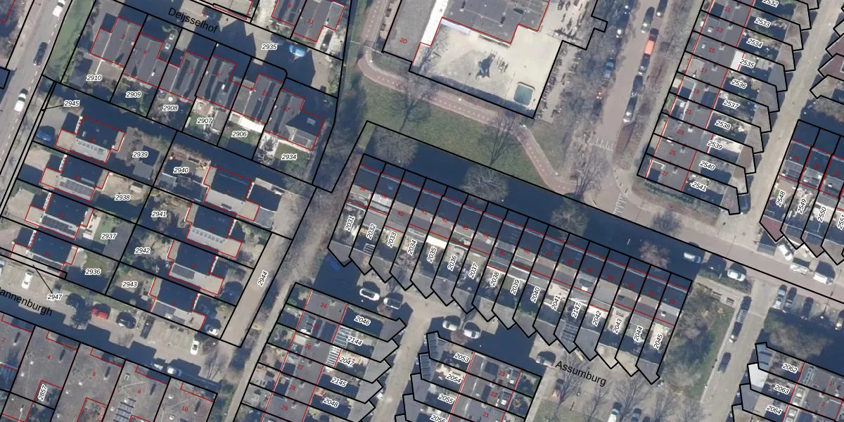 Gebruik de zoekbalk of klik op een perceel voor informatie over de adressen binnen dit perceel.