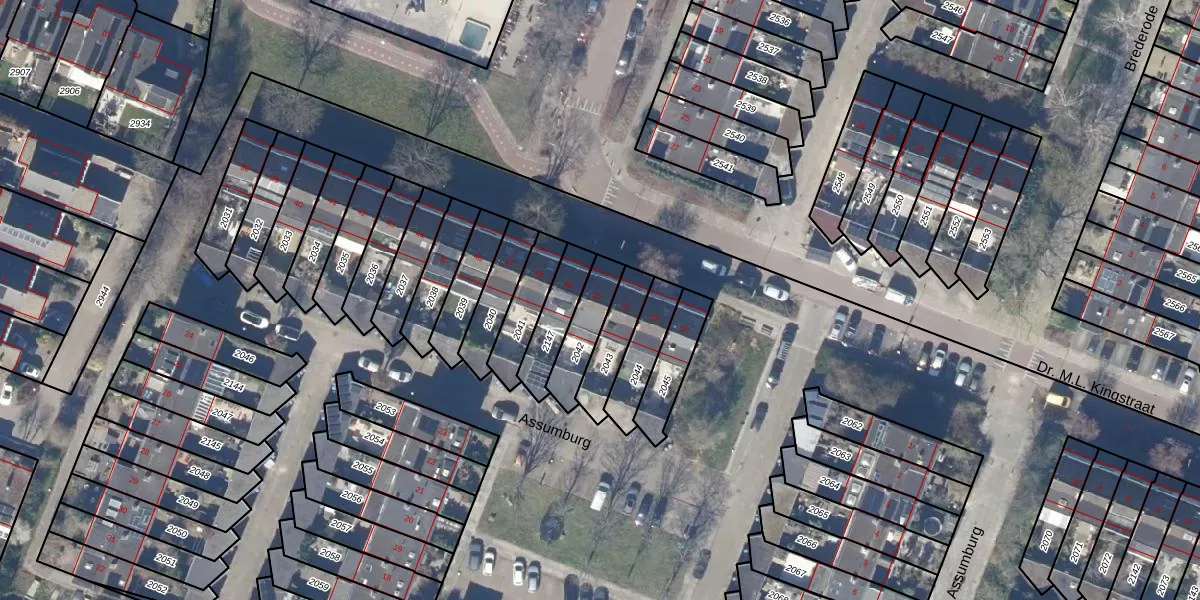 Gebruik de zoekbalk of klik op een perceel voor informatie over de adressen binnen dit perceel.