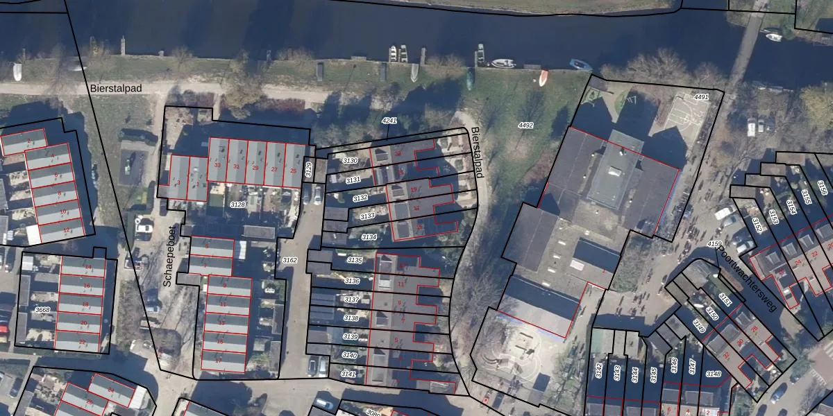 Gebruik de zoekbalk of klik op een perceel voor informatie over de adressen binnen dit perceel.