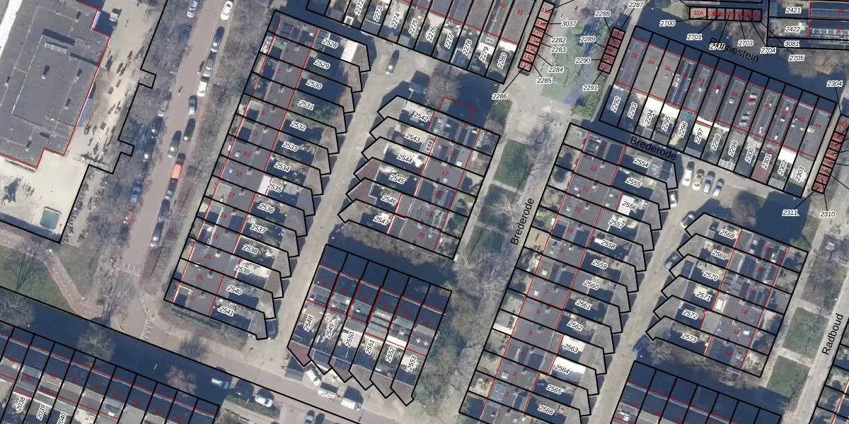 Gebruik de zoekbalk of klik op een perceel voor informatie over de adressen binnen dit perceel.