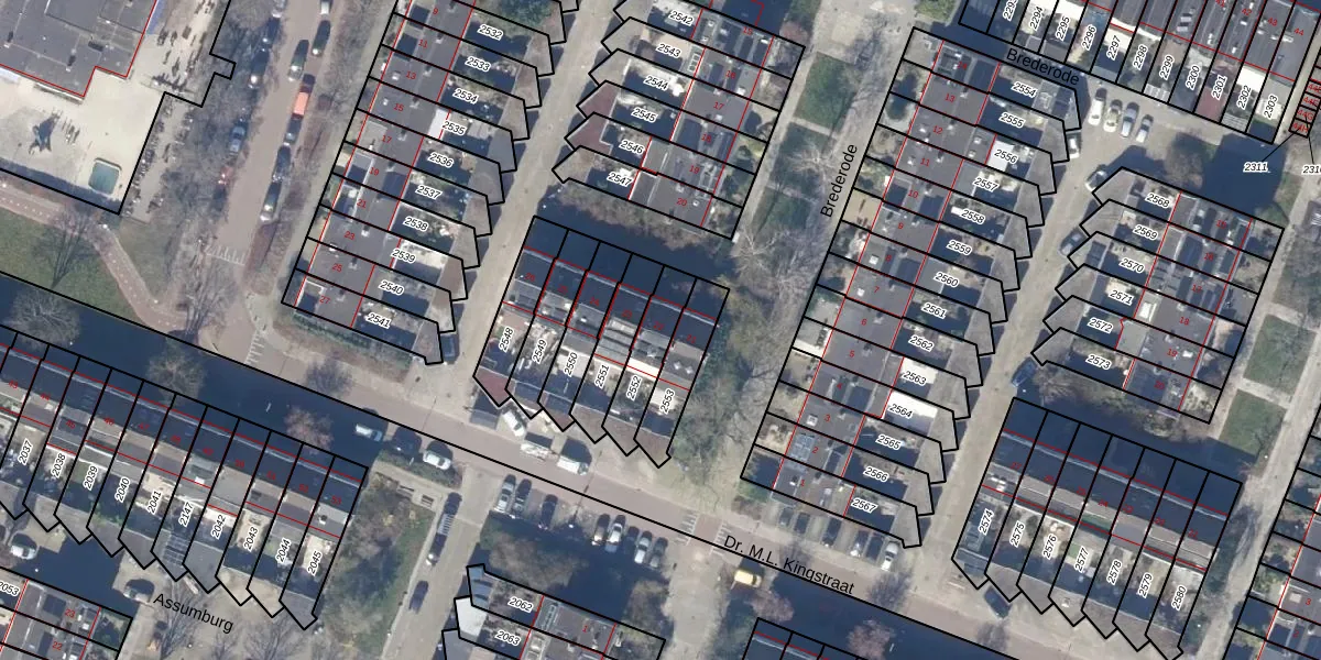 Gebruik de zoekbalk of klik op een perceel voor informatie over de adressen binnen dit perceel.