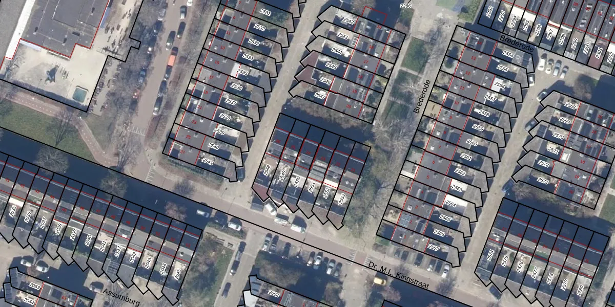 Gebruik de zoekbalk of klik op een perceel voor informatie over de adressen binnen dit perceel.