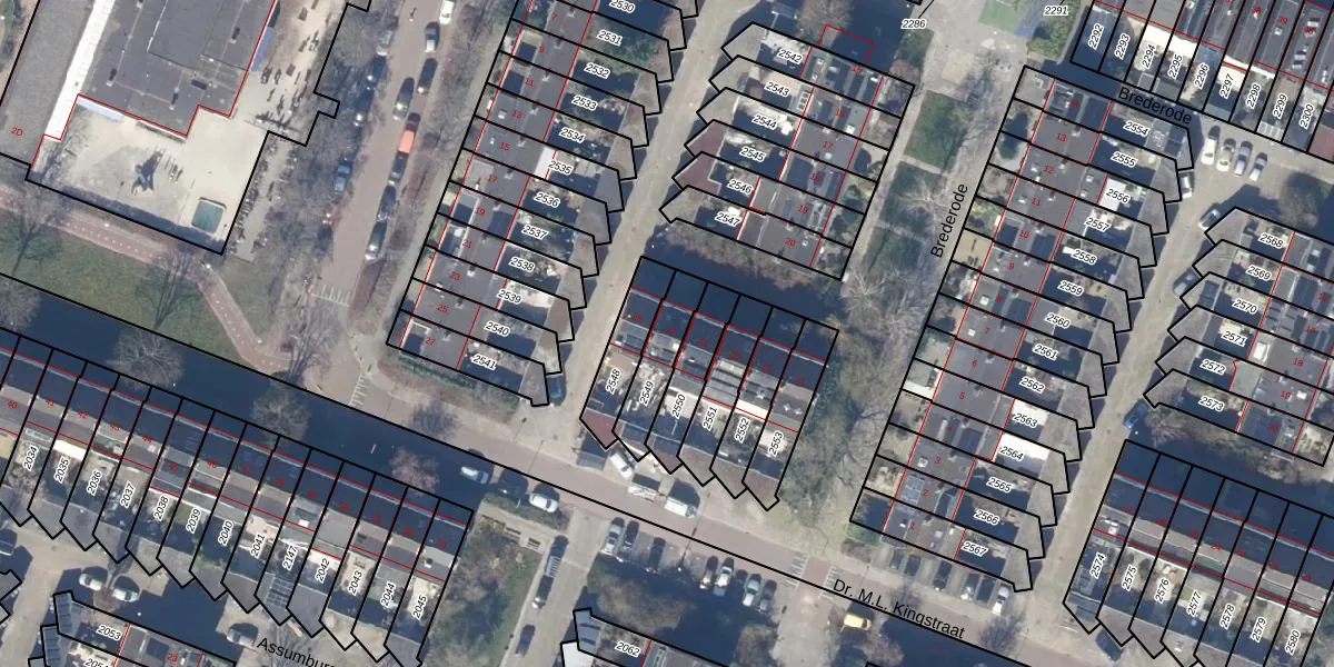 Gebruik de zoekbalk of klik op een perceel voor informatie over de adressen binnen dit perceel.