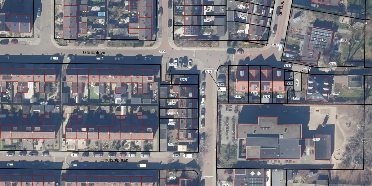 Gebruik de zoekbalk of klik op een perceel voor informatie over de adressen binnen dit perceel.