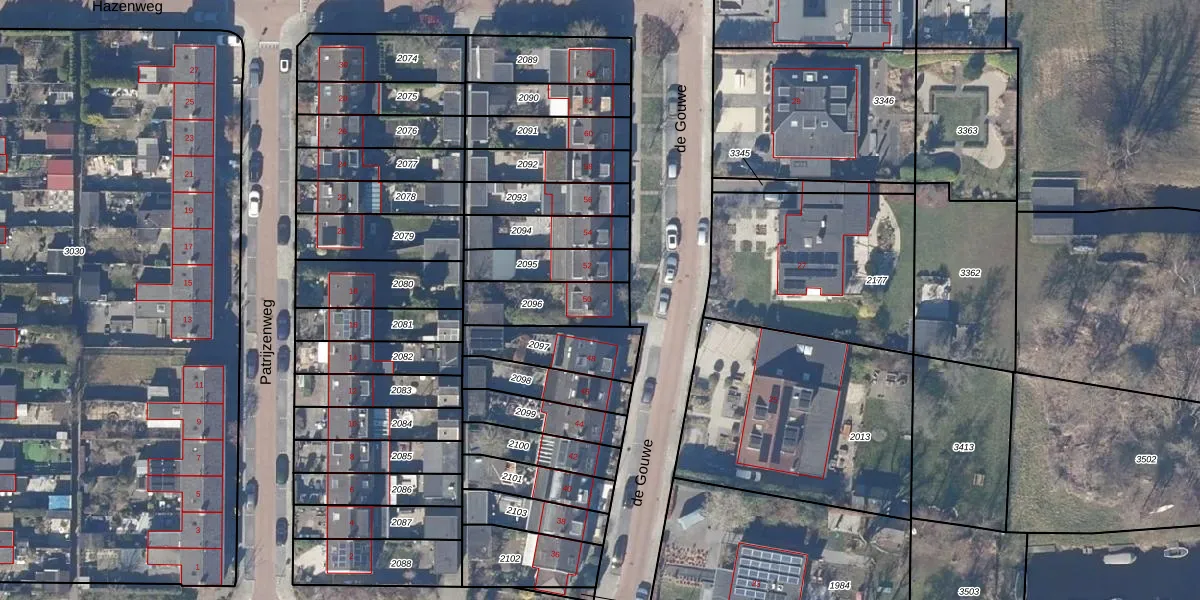 Gebruik de zoekbalk of klik op een perceel voor informatie over de adressen binnen dit perceel.