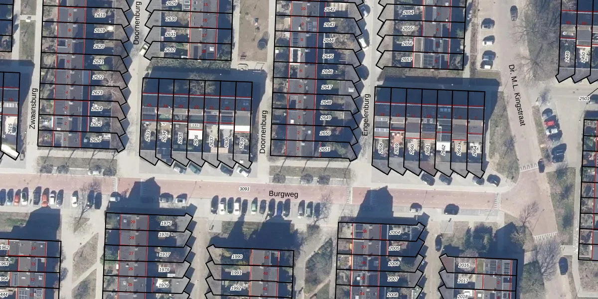 Gebruik de zoekbalk of klik op een perceel voor informatie over de adressen binnen dit perceel.