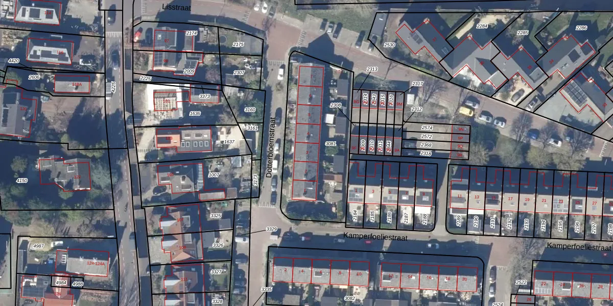 Het perceel waarop Dotterbloemstraat 3 staat heeft een oppervlakte van 1100 m². Dit is een zeer groot perceel. De perceeloppervlakte wordt geregistreerd door het Kadaster. Gedetailleerde informatie over de maten van dit perceel kunt u vinden in het rapport Kadastrale kaart met maatvoering van Dotterbloemstraat 3.