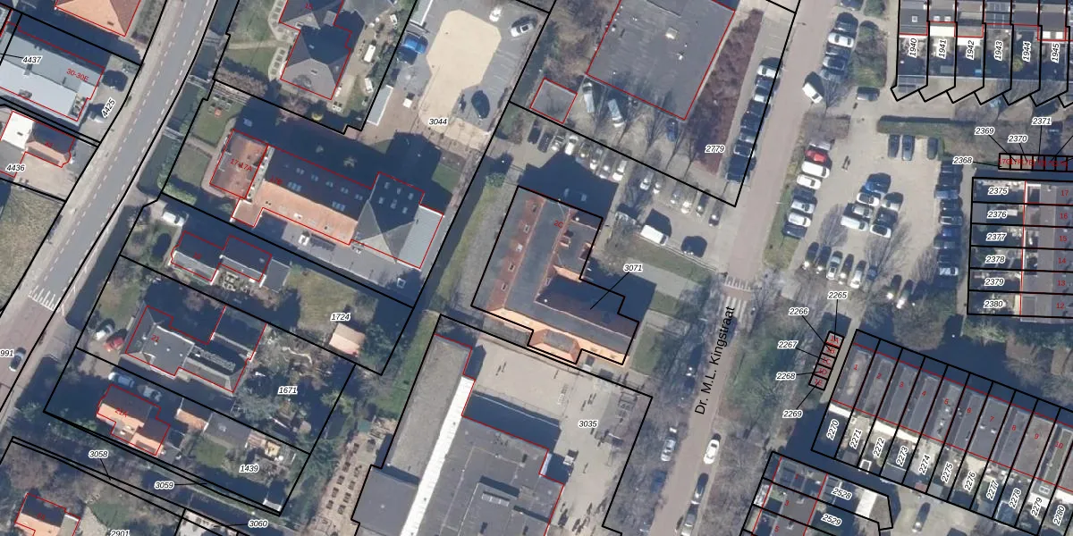 Dr. M.L. Kingstraat 2-C is gelegen op kadastraal perceel LMR02D3071. Deze kadastrale aanduiding is uniek en wordt gebruikt door het Kadaster om eigendomsrechten en andere zakelijke rechten vast te leggen. Het perceel maakt onderdeel uit van de kadastrale gemeente Landsmeer.