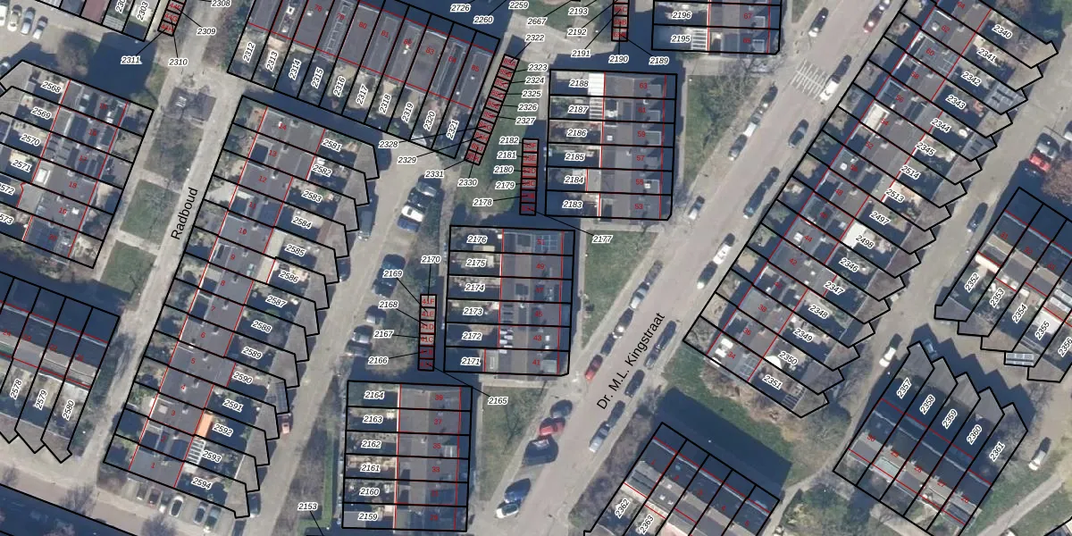 Gebruik de zoekbalk of klik op een perceel voor informatie over de adressen binnen dit perceel.
