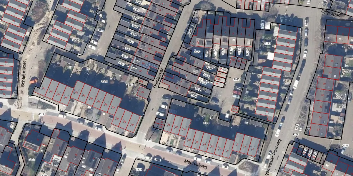 Gebruik de zoekbalk of klik op een perceel voor informatie over de adressen binnen dit perceel.