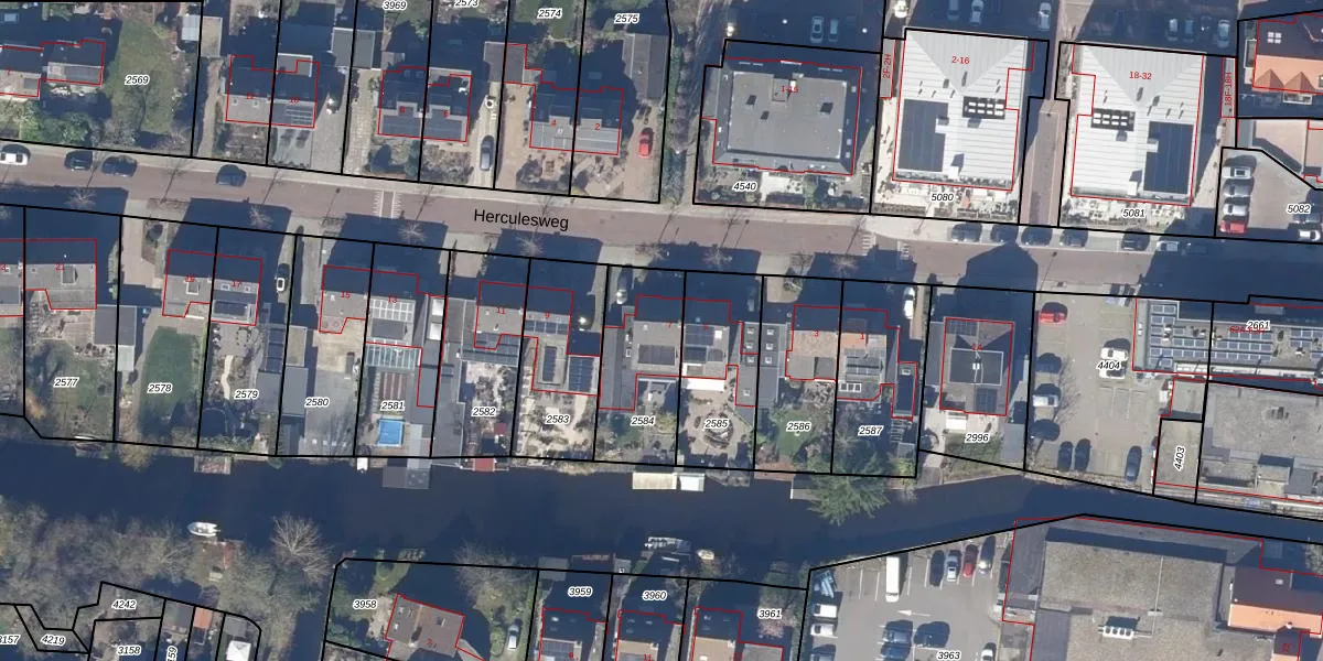Gebruik de zoekbalk of klik op een perceel voor informatie over de adressen binnen dit perceel.