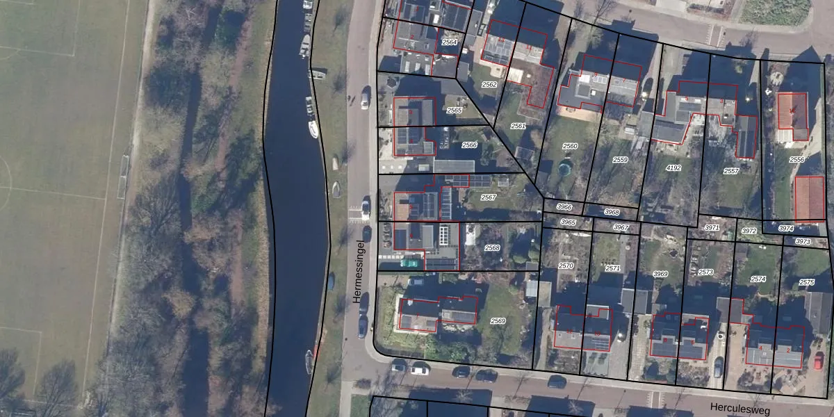 Het perceel waarop Hermessingel 5 staat heeft een oppervlakte van 445 m². Dit is een groot perceel. De perceeloppervlakte wordt geregistreerd door het Kadaster. Gedetailleerde informatie over de maten van dit perceel kunt u vinden in het rapport Kadastrale kaart met maatvoering van Hermessingel 5.