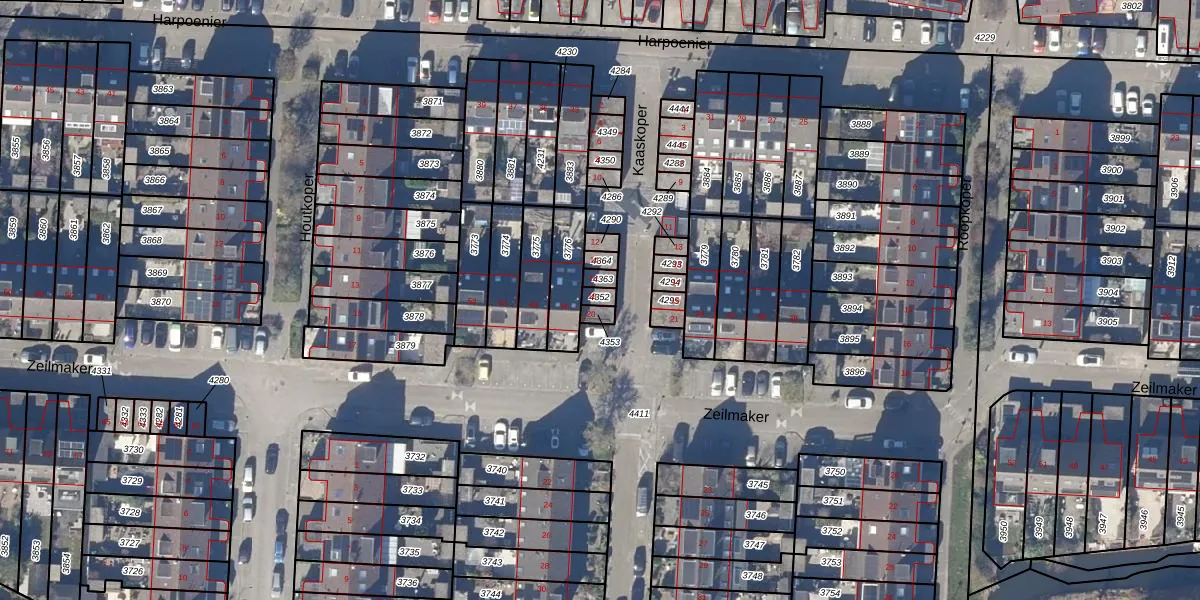 Het perceel waarop Kaaskoper 18 staat heeft een oppervlakte van 17 m². Dit is een klein perceel. De perceeloppervlakte wordt geregistreerd door het Kadaster. Gedetailleerde informatie over de maten van dit perceel kunt u vinden in het rapport Kadastrale kaart met maatvoering van Kaaskoper 18.