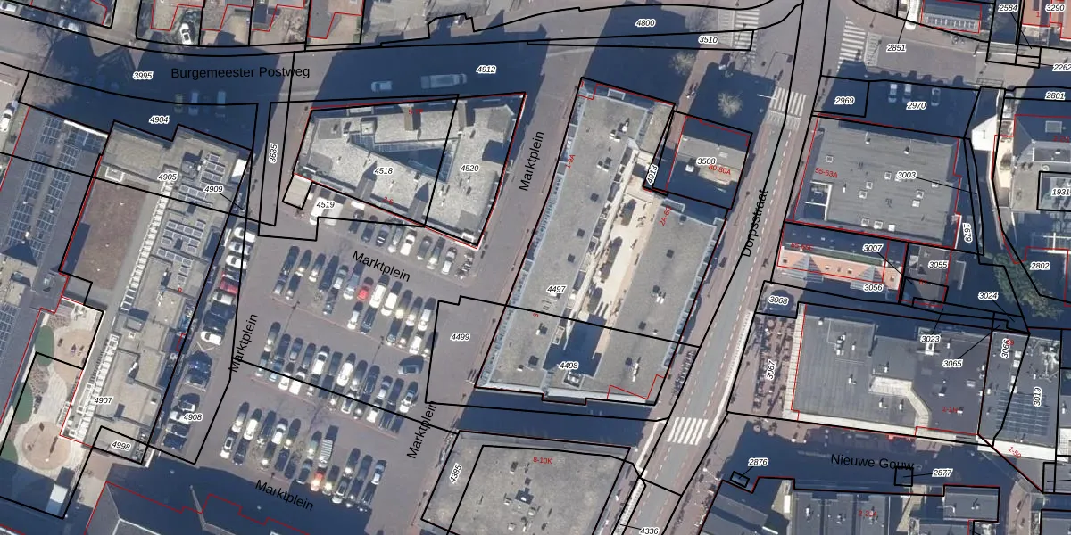 Het perceel waarop Marktplein 3 staat heeft een oppervlakte van 1190 m². Dit is een zeer groot perceel. De perceeloppervlakte wordt geregistreerd door het Kadaster. Gedetailleerde informatie over de maten van dit perceel kunt u vinden in het rapport Kadastrale kaart met maatvoering van Marktplein 3.