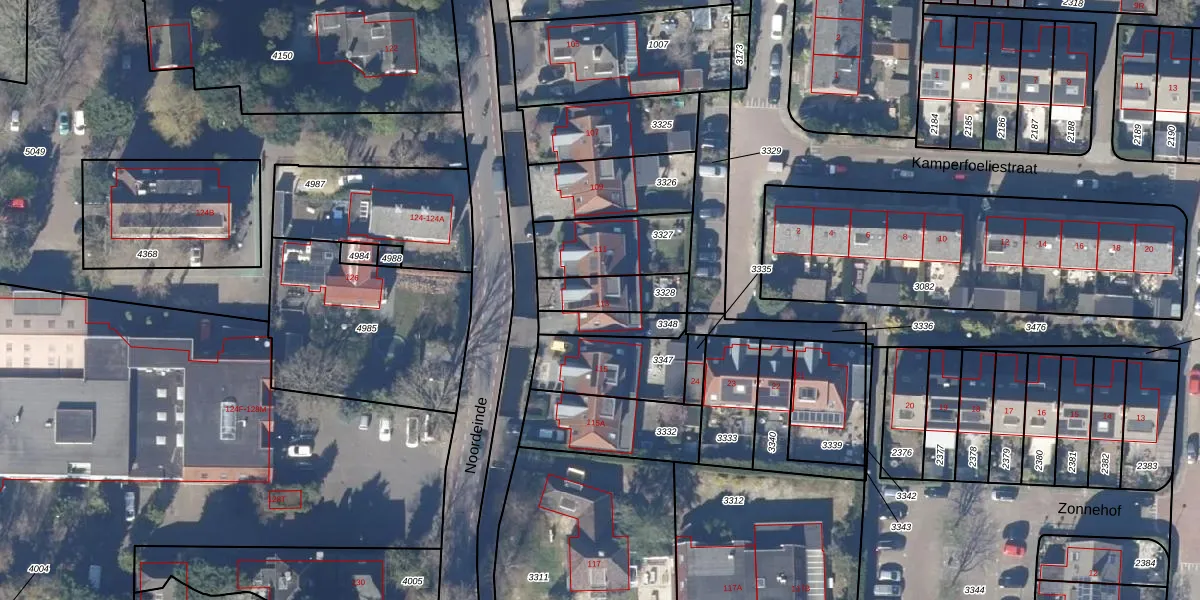 Gebruik de zoekbalk of klik op een perceel voor informatie over de adressen binnen dit perceel.