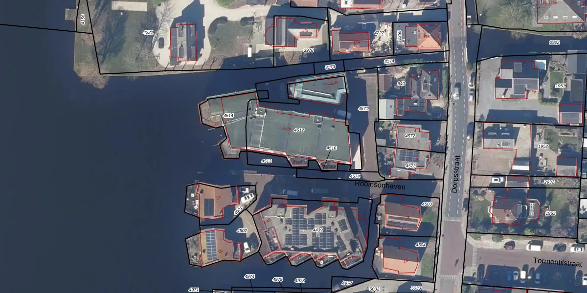 Het perceel waarop Robinsonhaven 20 staat heeft een oppervlakte van 960 m². Dit is een groot perceel. De perceeloppervlakte wordt geregistreerd door het Kadaster. Gedetailleerde informatie over de maten van dit perceel kunt u vinden in het rapport Kadastrale kaart met maatvoering van Robinsonhaven 20.