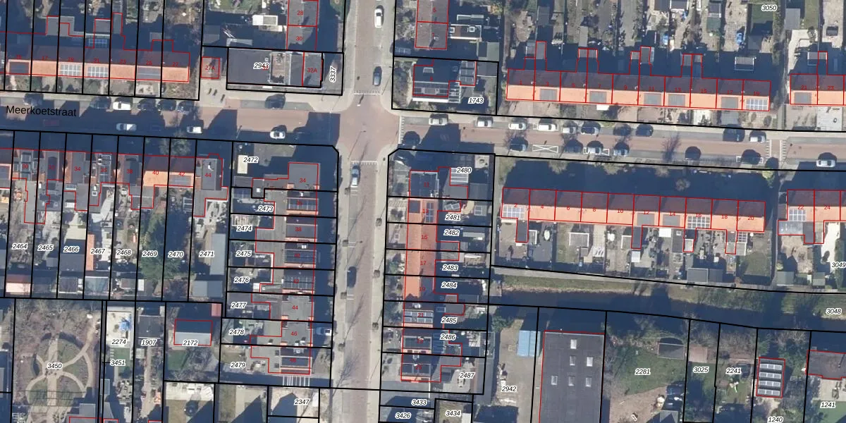 Gebruik de zoekbalk of klik op een perceel voor informatie over de adressen binnen dit perceel.