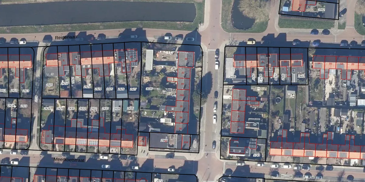 Het perceel waarop Roerdompstraat 24-A staat heeft een oppervlakte van 1625 m². Dit is een zeer groot perceel. De perceeloppervlakte wordt geregistreerd door het Kadaster. Gedetailleerde informatie over de maten van dit perceel kunt u vinden in het rapport Kadastrale kaart met maatvoering van Roerdompstraat 24-A.