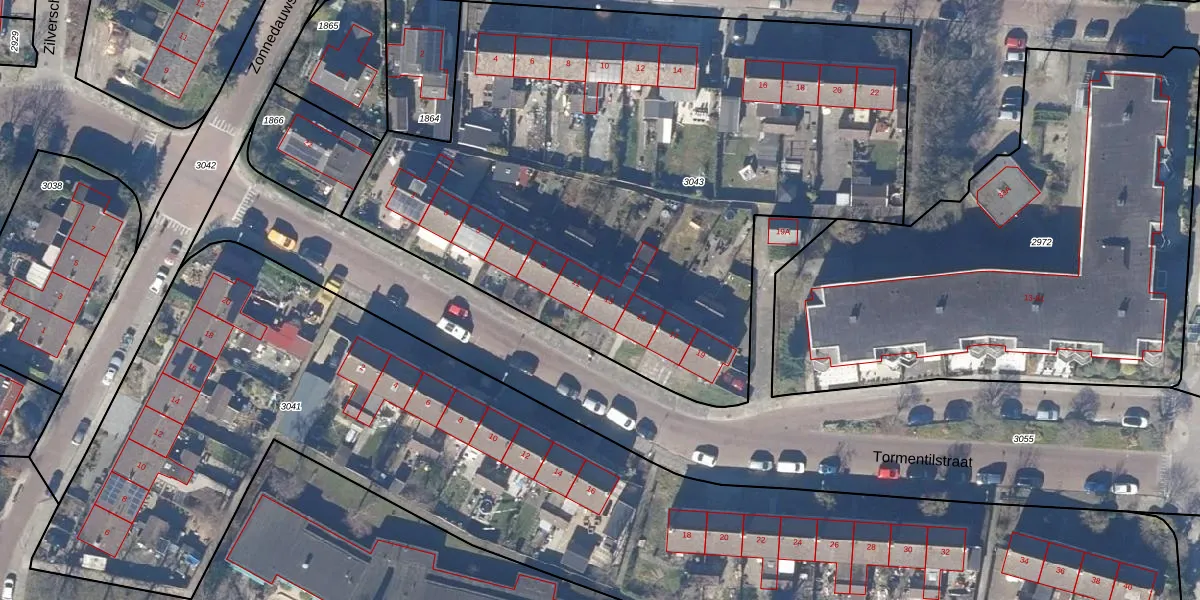 Het perceel waarop Tormentilstraat 13 staat heeft een oppervlakte van 3955 m². Dit is een zeer groot perceel. De perceeloppervlakte wordt geregistreerd door het Kadaster. Gedetailleerde informatie over de maten van dit perceel kunt u vinden in het rapport Kadastrale kaart met maatvoering van Tormentilstraat 13.