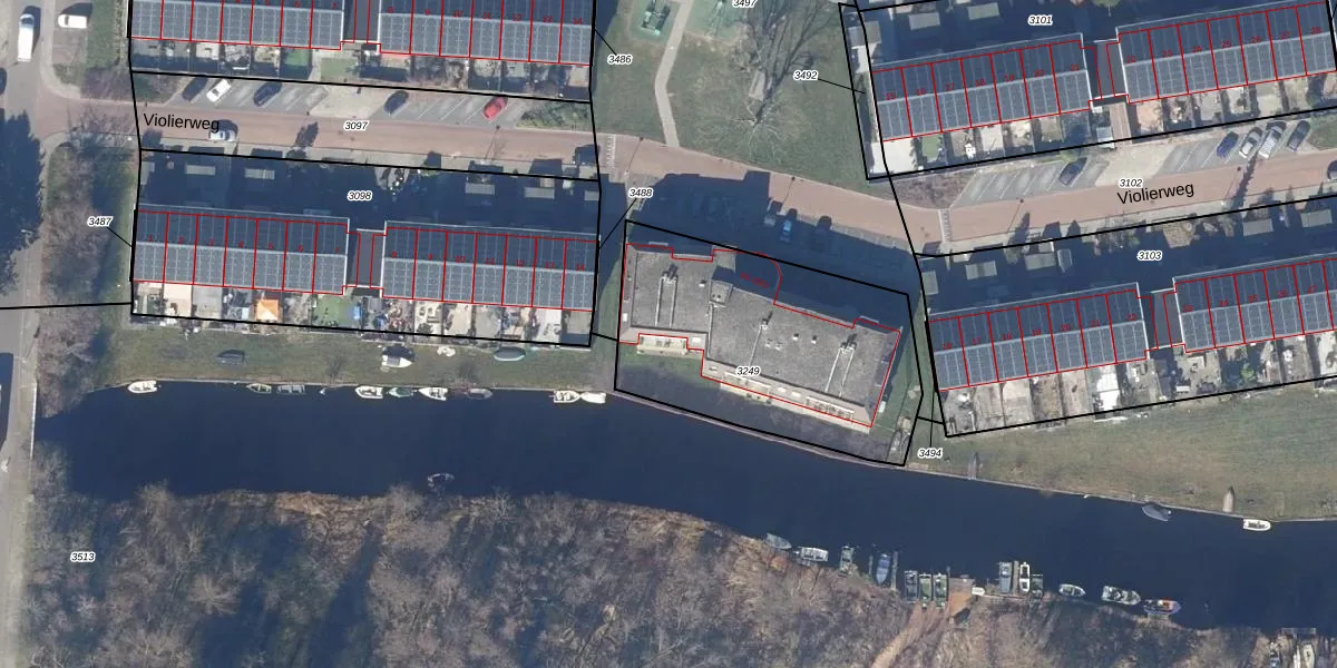 Violierweg 15-E is gelegen op kadastraal perceel LMR02B3249. Deze kadastrale aanduiding is uniek en wordt gebruikt door het Kadaster om eigendomsrechten en andere zakelijke rechten vast te leggen. Het perceel maakt onderdeel uit van de kadastrale gemeente Landsmeer.