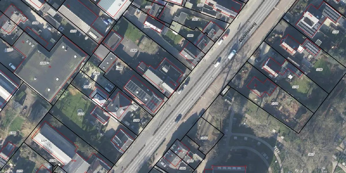 Het perceel waarop Doornseweg 14 staat heeft een oppervlakte van 1040 m². Dit is een zeer groot perceel. De perceeloppervlakte wordt geregistreerd door het Kadaster. Gedetailleerde informatie over de maten van dit perceel kunt u vinden in het rapport Kadastrale kaart met maatvoering van Doornseweg 14.