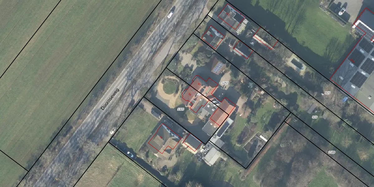 Doornseweg 95 is gelegen op kadastraal perceel LBK02A1320. Deze kadastrale aanduiding is uniek en wordt gebruikt door het Kadaster om eigendomsrechten en andere zakelijke rechten vast te leggen. Het perceel maakt onderdeel uit van de kadastrale gemeente Langbroek.