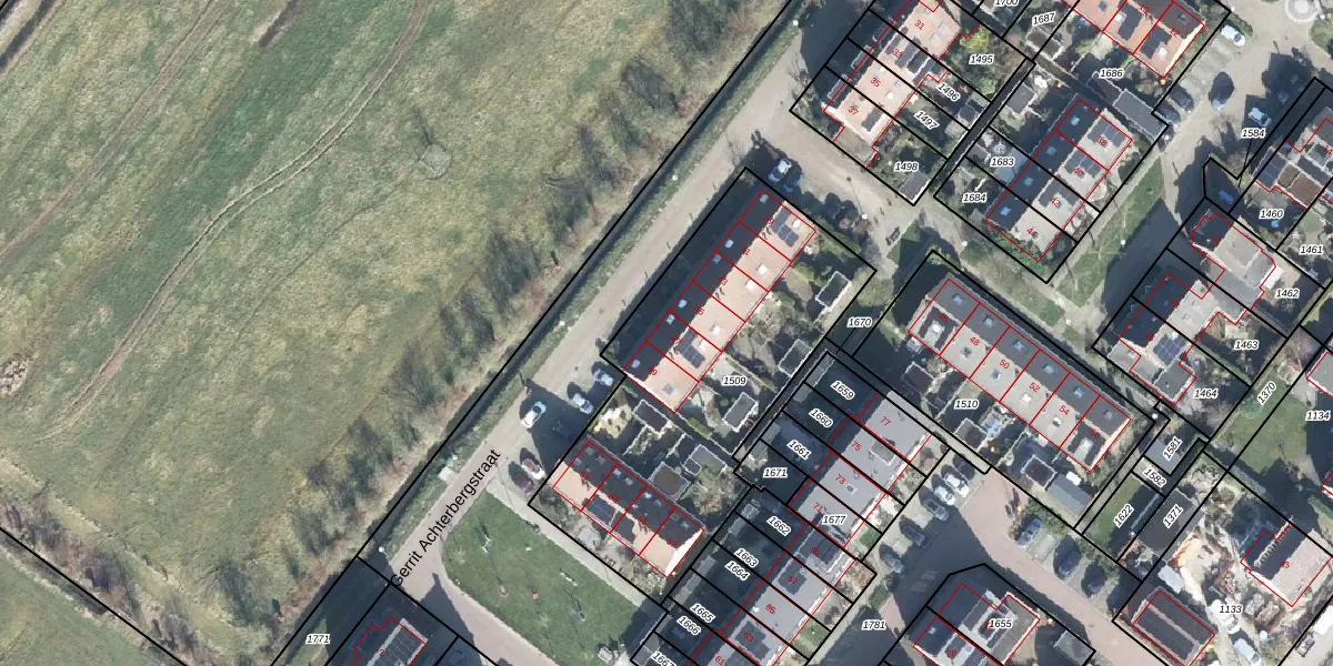 Het perceel waarop Gerrit Achterbergstraat 47 staat heeft een oppervlakte van 1470 m². Dit is een zeer groot perceel. De perceeloppervlakte wordt geregistreerd door het Kadaster. Gedetailleerde informatie over de maten van dit perceel kunt u vinden in het rapport Kadastrale kaart met maatvoering van Gerrit Achterbergstraat 47.