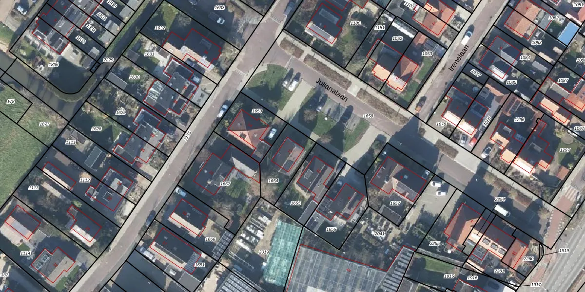 Het perceel waarop Julianalaan 12 staat heeft een oppervlakte van 285 m². Dit is een middelgroot perceel. De perceeloppervlakte wordt geregistreerd door het Kadaster. Gedetailleerde informatie over de maten van dit perceel kunt u vinden in het rapport Kadastrale kaart met maatvoering van Julianalaan 12.