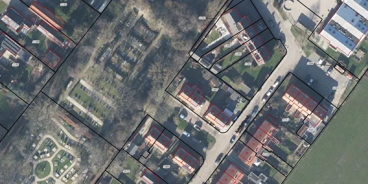 Het perceel waarop Kerkeland 38 staat heeft een oppervlakte van 915 m². Dit is een groot perceel. De perceeloppervlakte wordt geregistreerd door het Kadaster. Gedetailleerde informatie over de maten van dit perceel kunt u vinden in het rapport Kadastrale kaart met maatvoering van Kerkeland 38.