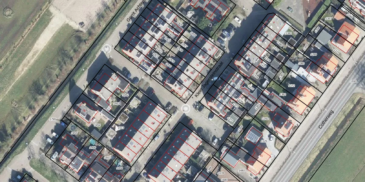 Het perceel waarop Klein Jagersteinstraat 24 staat heeft een oppervlakte van 174 m². Dit is een middelgroot perceel. De perceeloppervlakte wordt geregistreerd door het Kadaster. Gedetailleerde informatie over de maten van dit perceel kunt u vinden in het rapport Kadastrale kaart met maatvoering van Klein Jagersteinstraat 24.