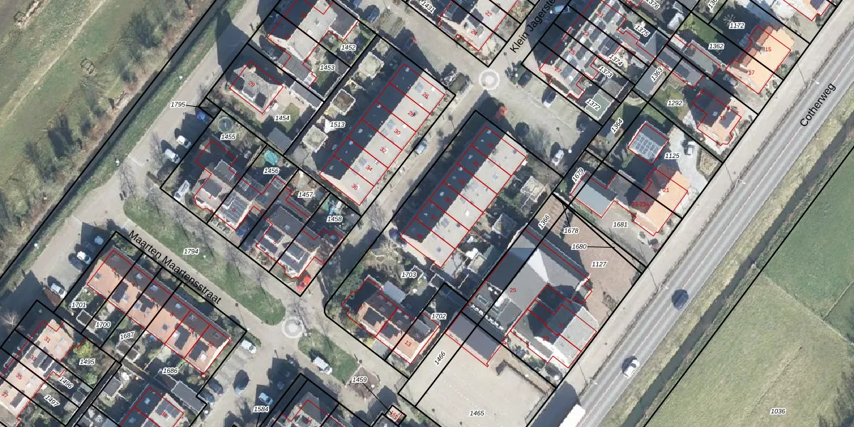 Het perceel waarop Klein Jagersteinstraat 37 staat heeft een oppervlakte van 1365 m². Dit is een zeer groot perceel. De perceeloppervlakte wordt geregistreerd door het Kadaster. Gedetailleerde informatie over de maten van dit perceel kunt u vinden in het rapport Kadastrale kaart met maatvoering van Klein Jagersteinstraat 37.