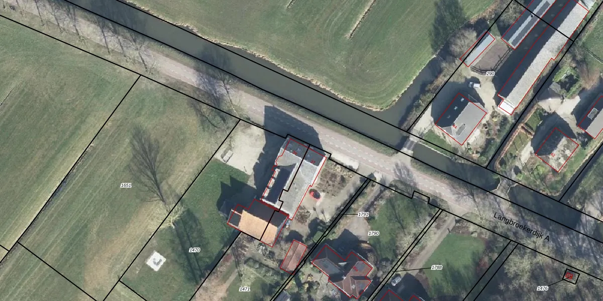 Het perceel waarop Langbroekerdijk A 39 staat heeft een oppervlakte van 1725 m². Dit is een zeer groot perceel. De perceeloppervlakte wordt geregistreerd door het Kadaster. Gedetailleerde informatie over de maten van dit perceel kunt u vinden in het rapport Kadastrale kaart met maatvoering van Langbroekerdijk A 39.