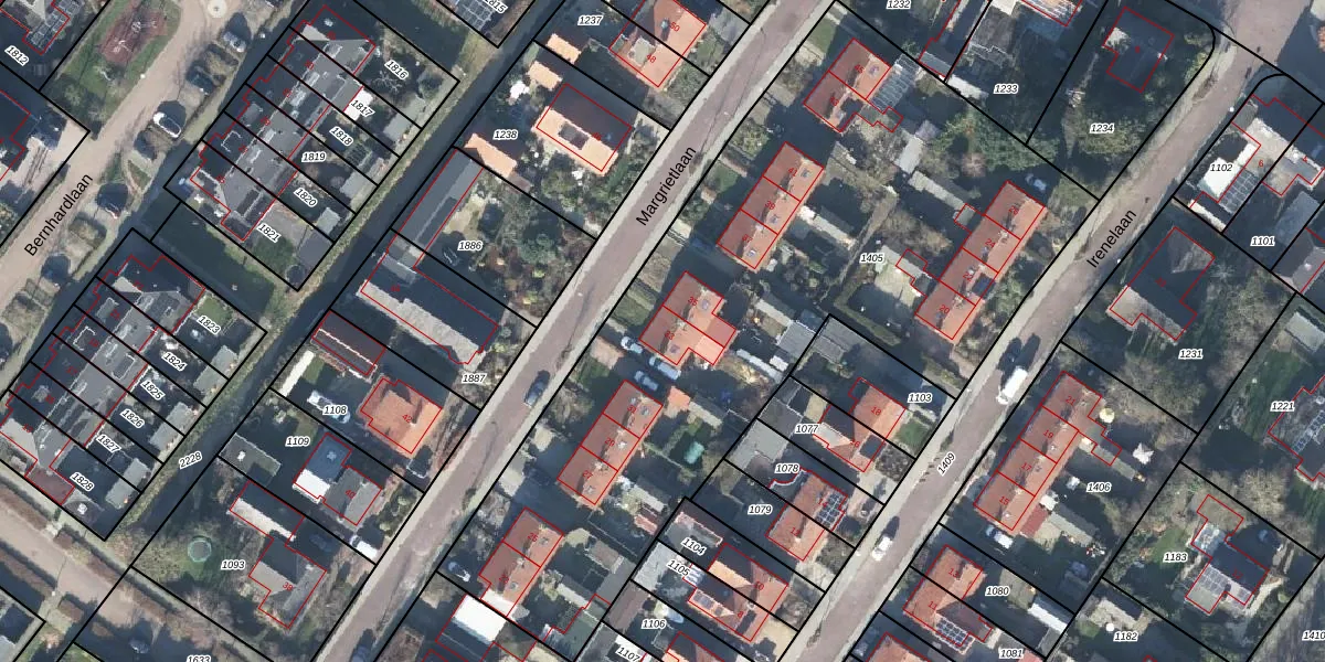 Het perceel waarop Margrietlaan 33 staat heeft een oppervlakte van 3550 m². Dit is een zeer groot perceel. De perceeloppervlakte wordt geregistreerd door het Kadaster. Gedetailleerde informatie over de maten van dit perceel kunt u vinden in het rapport Kadastrale kaart met maatvoering van Margrietlaan 33.