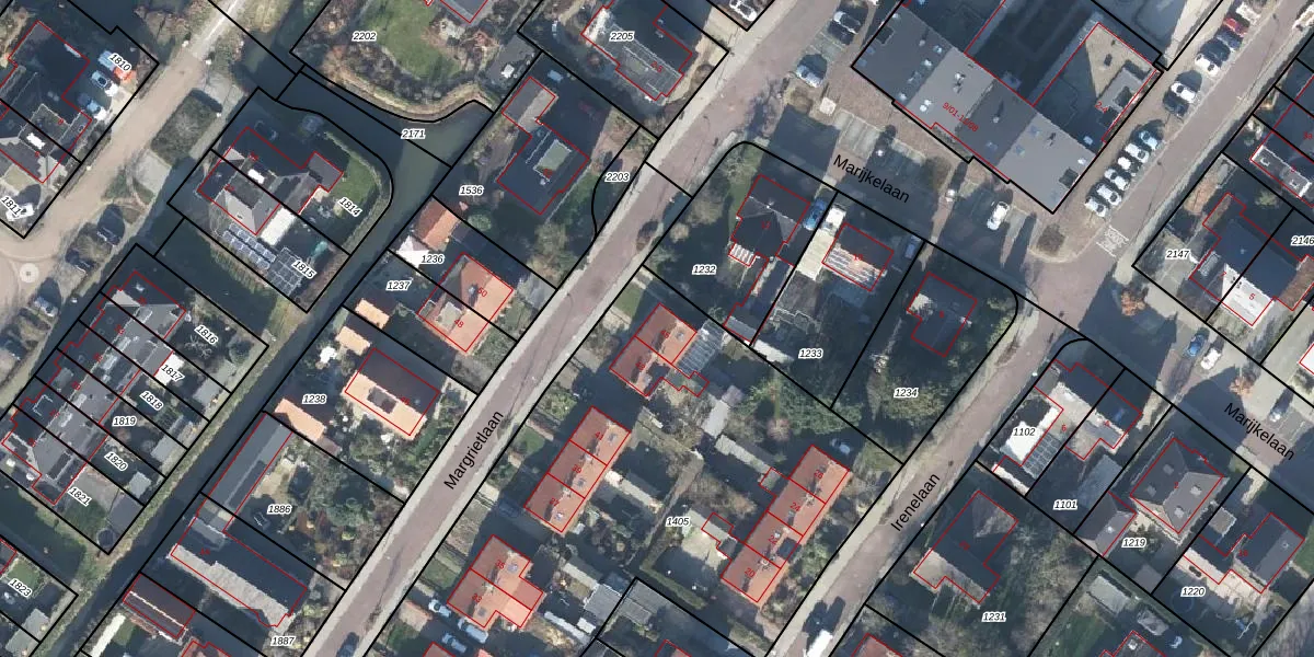Het perceel waarop Margrietlaan 45 staat heeft een oppervlakte van 3550 m². Dit is een zeer groot perceel. De perceeloppervlakte wordt geregistreerd door het Kadaster. Gedetailleerde informatie over de maten van dit perceel kunt u vinden in het rapport Kadastrale kaart met maatvoering van Margrietlaan 45.
