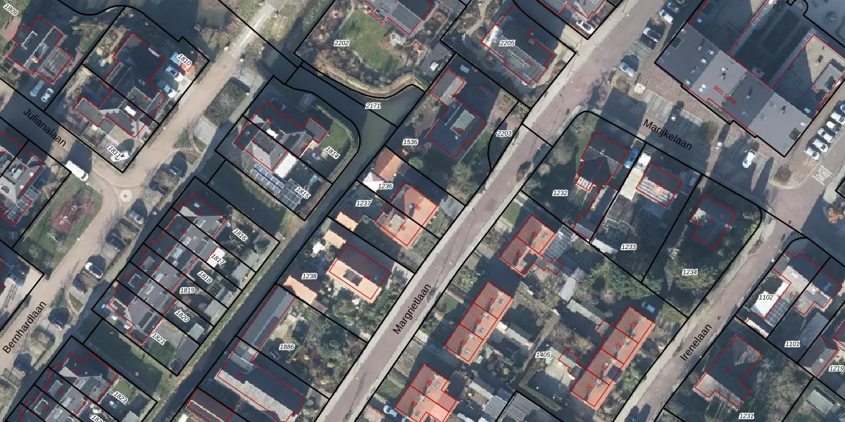 Het perceel waarop Margrietlaan 50 staat heeft een oppervlakte van 247 m². Dit is een middelgroot perceel. De perceeloppervlakte wordt geregistreerd door het Kadaster. Gedetailleerde informatie over de maten van dit perceel kunt u vinden in het rapport Kadastrale kaart met maatvoering van Margrietlaan 50.