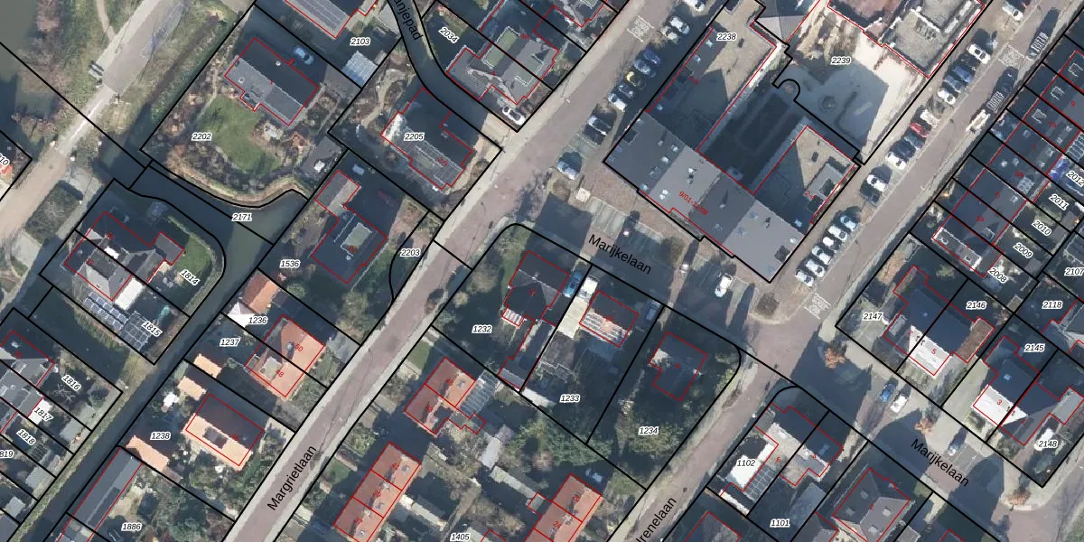 Het perceel waarop Marijkelaan 12 staat heeft een oppervlakte van 495 m². Dit is een groot perceel. De perceeloppervlakte wordt geregistreerd door het Kadaster. Gedetailleerde informatie over de maten van dit perceel kunt u vinden in het rapport Kadastrale kaart met maatvoering van Marijkelaan 12.