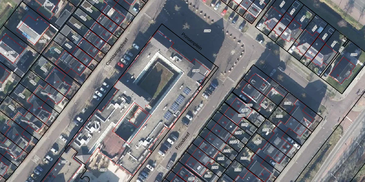 Het perceel waarop Prinsenplein 4-07 staat heeft een oppervlakte van 3520 m². Dit is een zeer groot perceel. De perceeloppervlakte wordt geregistreerd door het Kadaster. Gedetailleerde informatie over de maten van dit perceel kunt u vinden in het rapport Kadastrale kaart met maatvoering van Prinsenplein 4-07.