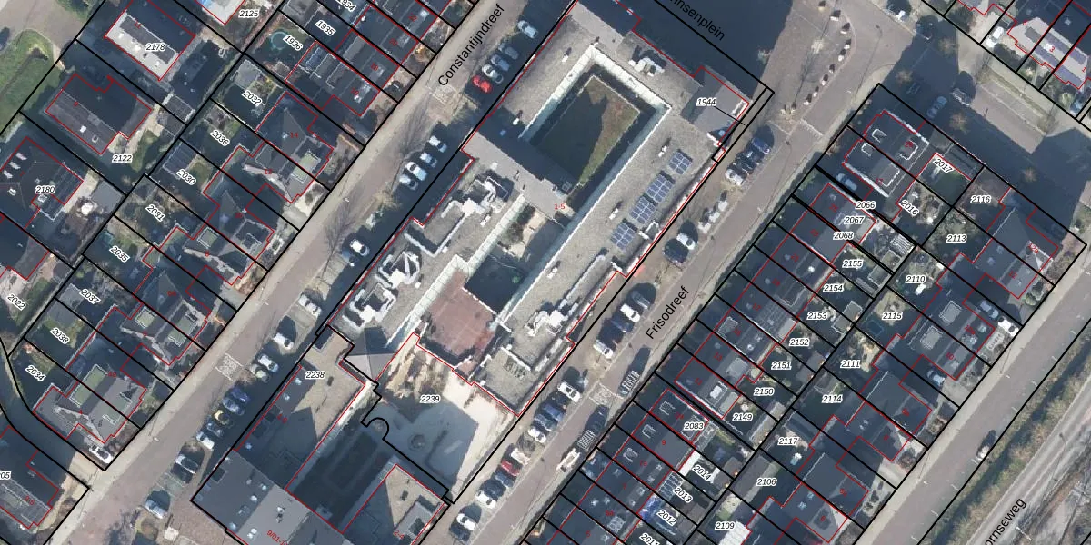 Het perceel waarop Prinsenplein 4-15 staat heeft een oppervlakte van 3520 m². Dit is een zeer groot perceel. De perceeloppervlakte wordt geregistreerd door het Kadaster. Gedetailleerde informatie over de maten van dit perceel kunt u vinden in het rapport Kadastrale kaart met maatvoering van Prinsenplein 4-15.