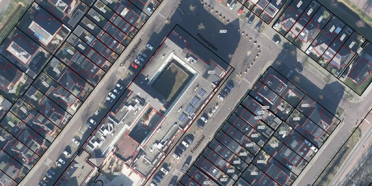 Het perceel waarop Prinsenplein 4-21 staat heeft een oppervlakte van 3520 m². Dit is een zeer groot perceel. De perceeloppervlakte wordt geregistreerd door het Kadaster. Gedetailleerde informatie over de maten van dit perceel kunt u vinden in het rapport Kadastrale kaart met maatvoering van Prinsenplein 4-21.