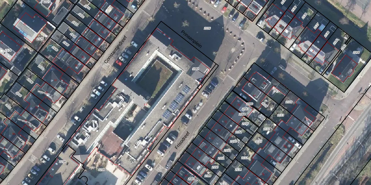 Het perceel waarop Prinsenplein 4-35 staat heeft een oppervlakte van 3520 m². Dit is een zeer groot perceel. De perceeloppervlakte wordt geregistreerd door het Kadaster. Gedetailleerde informatie over de maten van dit perceel kunt u vinden in het rapport Kadastrale kaart met maatvoering van Prinsenplein 4-35.
