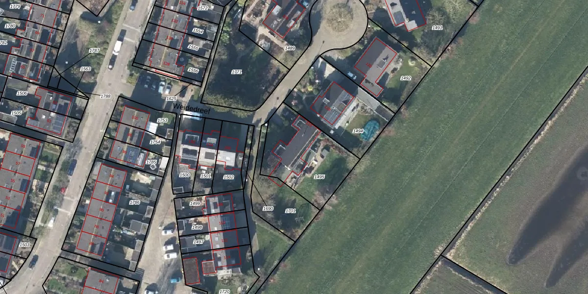 Weidedreef 116 is gelegen op kadastraal perceel LBK02A1495. Deze kadastrale aanduiding is uniek en wordt gebruikt door het Kadaster om eigendomsrechten en andere zakelijke rechten vast te leggen. Het perceel maakt onderdeel uit van de kadastrale gemeente Langbroek.
