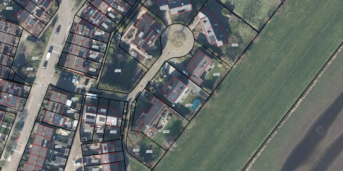 Weidedreef 118 is gelegen op kadastraal perceel LBK02A1494. Deze kadastrale aanduiding is uniek en wordt gebruikt door het Kadaster om eigendomsrechten en andere zakelijke rechten vast te leggen. Het perceel maakt onderdeel uit van de kadastrale gemeente Langbroek.