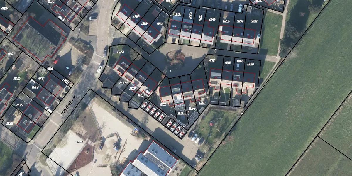 Weidedreef 12 is gelegen op kadastraal perceel LBK02A1369. Deze kadastrale aanduiding is uniek en wordt gebruikt door het Kadaster om eigendomsrechten en andere zakelijke rechten vast te leggen. Het perceel maakt onderdeel uit van de kadastrale gemeente Langbroek.